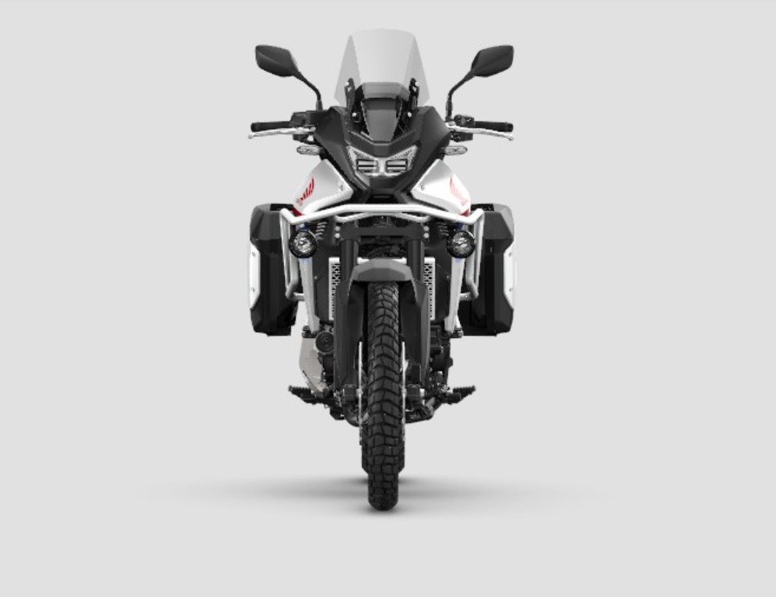 Montiertes Zubehör:Edelstahl Kühlergrill, Kunststoff-Koffersatz (33L/26L), Innenpacktaschen für Seitenkoffer, Hauptständer, Sturzbügel mit LED-Lampen, Felgendekor, seitliche Tankprotektoren