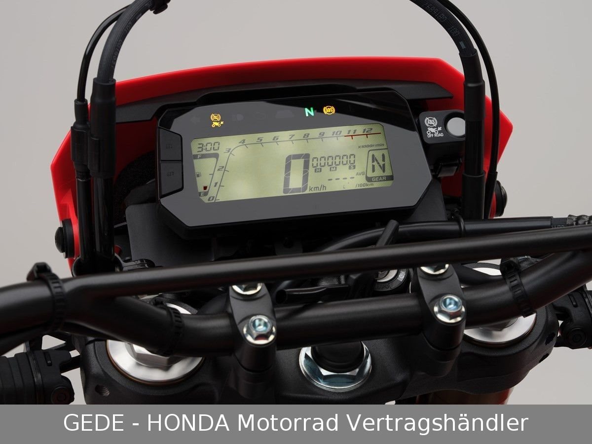 Verfügbarkeit(Sofort ab Lager inkl. GEDE BlackWeek-Rabatt vom 25.11. bis 29.11. - Siehe Bild 3): - 1xNeufahrzeugHonda CRF 300 L inExtreme Red(R292)für nur 5.916,00 € UVP (inkl. Überführungskosten des Herstellers):6.849,00 €