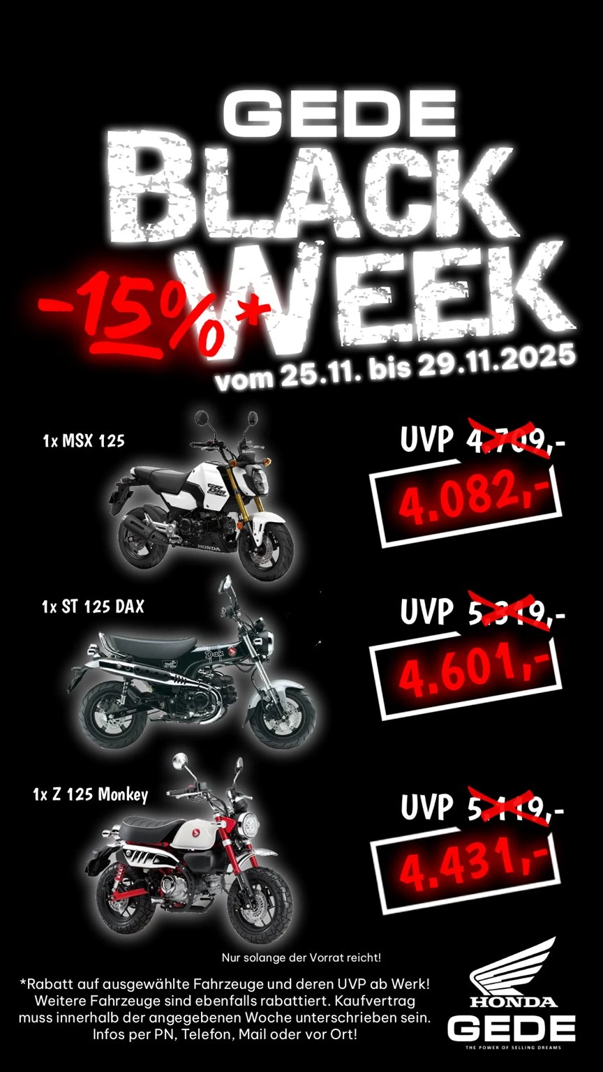 unseren BlackWeek-Rabatt. Jedes angebotene Fahrzeug nur einmal verfügbar! Preise nur im Aktionszeitraum gültig!
